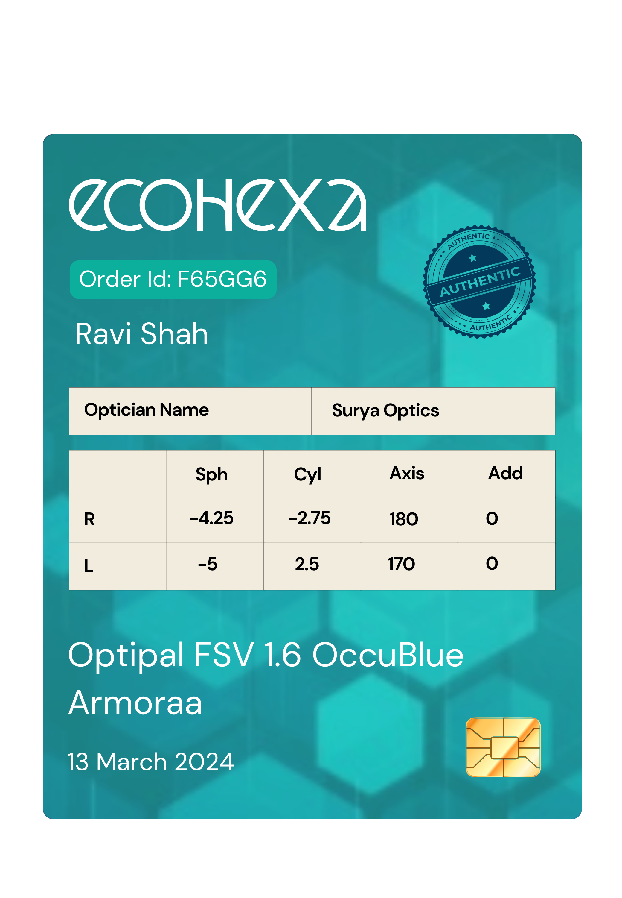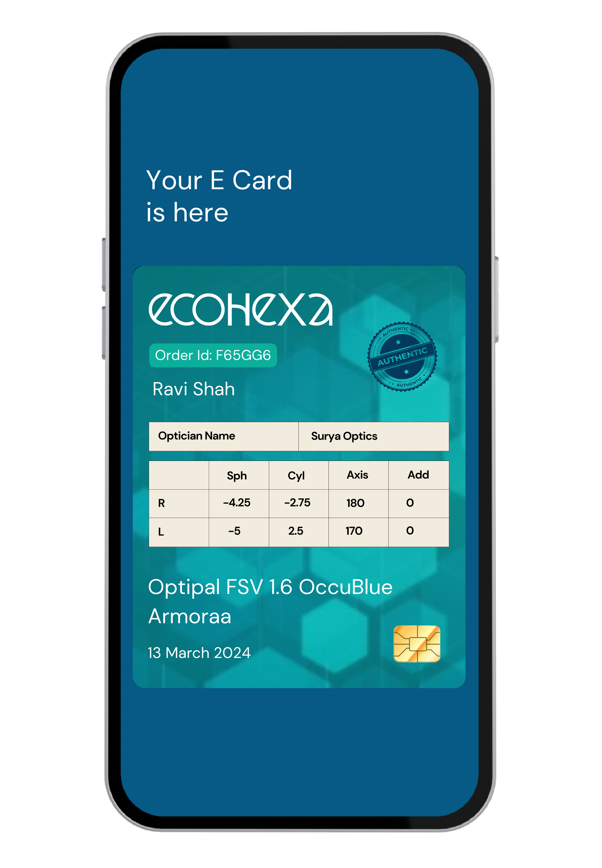 It is digital authenticity certificate for OptiPal ophthamic lenses that they were exclusively developed and manufactured for you within the Dr.Fyeno laboratories.